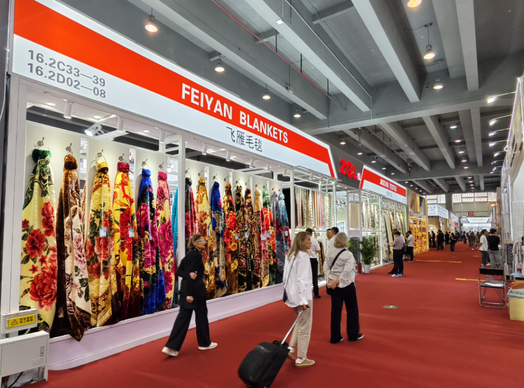在飛雁毛毯的展位上,百余條毛毯有序陳列,吸引大批新老客戶,中東、非洲等地的尤為眾多。為在廣交會嶄露頭角,飛雁毛毯公司提前半年籌備,在花型設(shè)計(jì)與樣品制作上用心投入。在保留原產(chǎn)品優(yōu)勢基礎(chǔ)上,探索新技術(shù)與工藝,開發(fā)3D印花壓花毯、泡泡剖花毯等新產(chǎn)品,豐富種類且提升質(zhì)量。5天時(shí)間里,銷售人員熱情飽滿、專業(yè)真誠,積極接待客戶,介紹產(chǎn)品、確認(rèn)訂單,贏得客戶認(rèn)可與信任。
