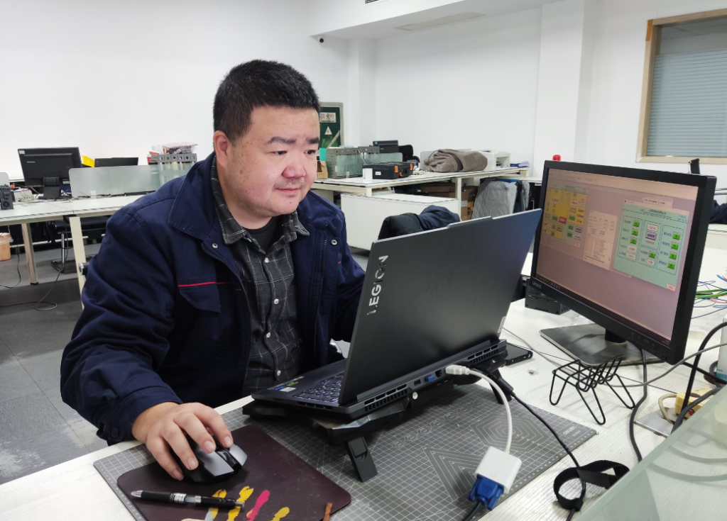 在設備調(diào)試工作中,良好的溝通能力是電氣工程師不可或缺的技能。徐海欣深知這一點,在實際工作中,他始終保持清晰耐心的態(tài)度,與團隊成員、客戶及現(xiàn)場操作人員保持有效溝通,幫助大家更快理解問題、更準確實施解決方案。在設備試運行過程中,他以專業(yè)的業(yè)務能力對生產(chǎn)過程進行全方位監(jiān)控、分析與優(yōu)化,不僅提高了生產(chǎn)效率、降低了成本,還提升了產(chǎn)品質(zhì)量,同時加強了設備運行過程的可追溯性和可控性。