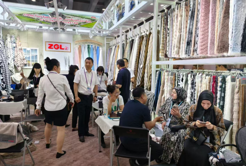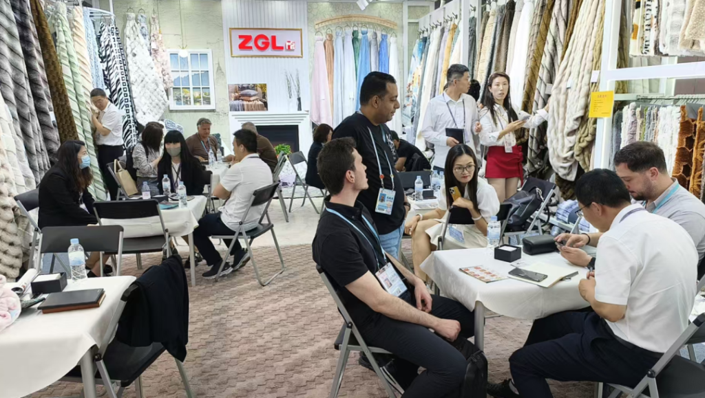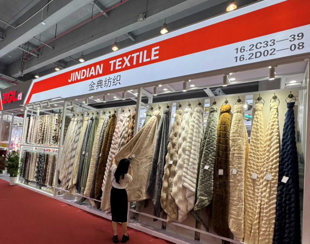 鷹游新立成紡織展位以全系列精品毛絨生產(chǎn)基地為主題,全方位展示兔毛、法蘭絨、舒棉條提花、短絨等產(chǎn)品,充分展現(xiàn)創(chuàng)新理念與實(shí)際應(yīng)用的結(jié)合,吸引了眾多客戶的目光。整個展會期間,新立成的展位前始終人潮涌動、熱鬧非凡,客戶詳細(xì)詢問產(chǎn)品的特性、價(jià)格與合作細(xì)節(jié),銷售人員專業(yè)熱情地為每一位訪客答疑解惑,現(xiàn)場訂單與合作意向紛至沓來,為企業(yè)的市場拓展與業(yè)務(wù)增長注入了強(qiáng)勁動力。